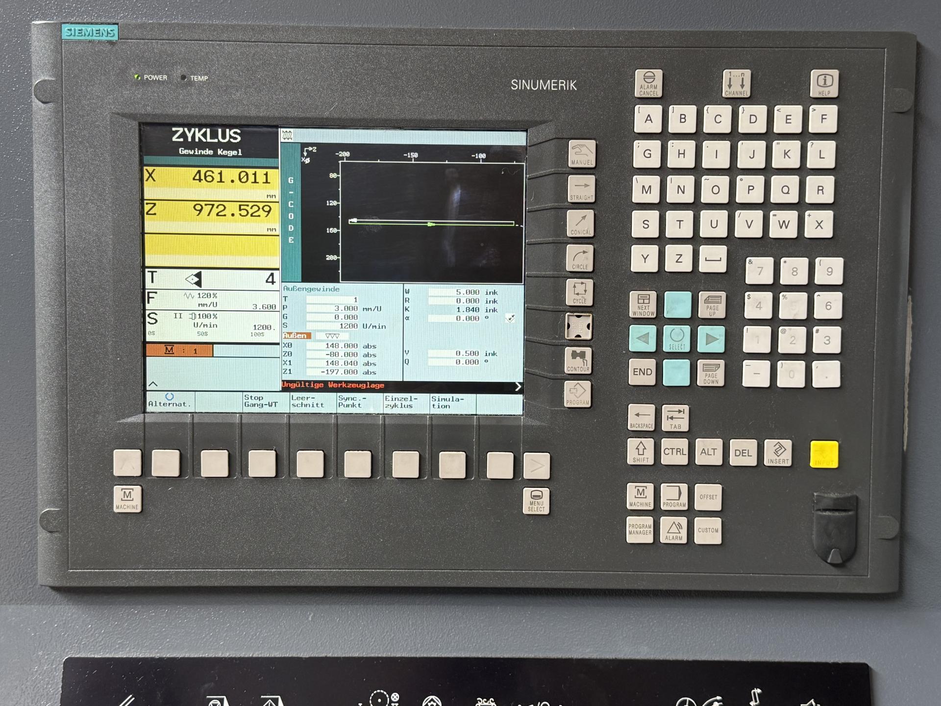 Swing over bed Ø: 570mm | Swing over cross slide Ø: 365mm | DBC Turning Length: 2000mm | Spindle bore: 62mm | Spindle power: 25kW | Tailstock spindle Ø: 100Ø | Stroke pinole: 190mm | Spindle taper: 4Mk | Workpiece weight: 2500 | Speeds / ranges: 2500Rpm | Feed rate X-Axis: 5000mm/min. | Feed rate Z-Axis: 10000mm/min. | Length: 4300mm | Width: 2100mm | Height: 2100mm | Weight: 5800kg